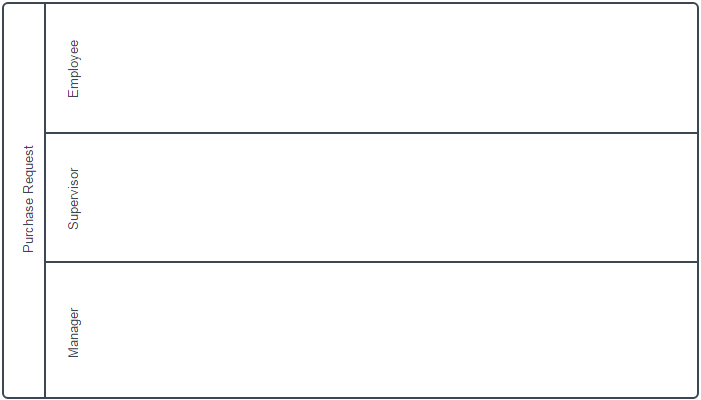Repeat the same action and add two more lanes. The final design of the pool will be divided into three sections (represented by the lanes). Double click on the label of the lanes to change their names to "Employee", "Supervisor" and "Manager". At this point, the design of the process should look like this:
