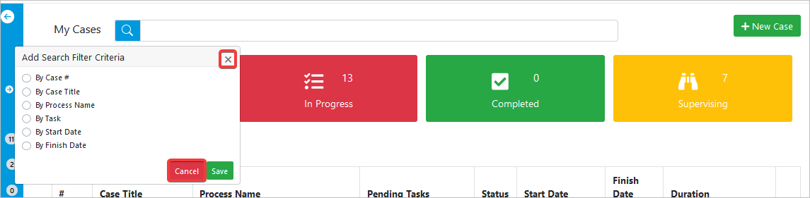 My Cases Filters